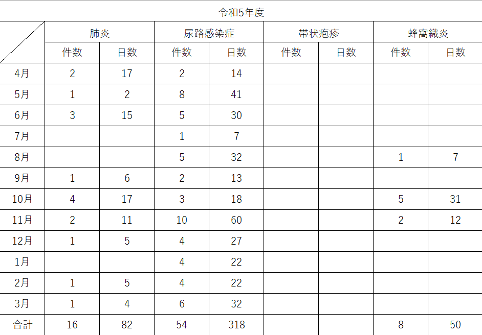 当施設では、所定疾患施設療養費を適切に算定し、利用者様の健康及び安心安全に繋げていきたいと考えておりますので、厚生労働省大臣が定める基準に基づき、所定疾患施設療養費の算定状況を公表し、今後もホームページにて実施状況をご報告して参ります。