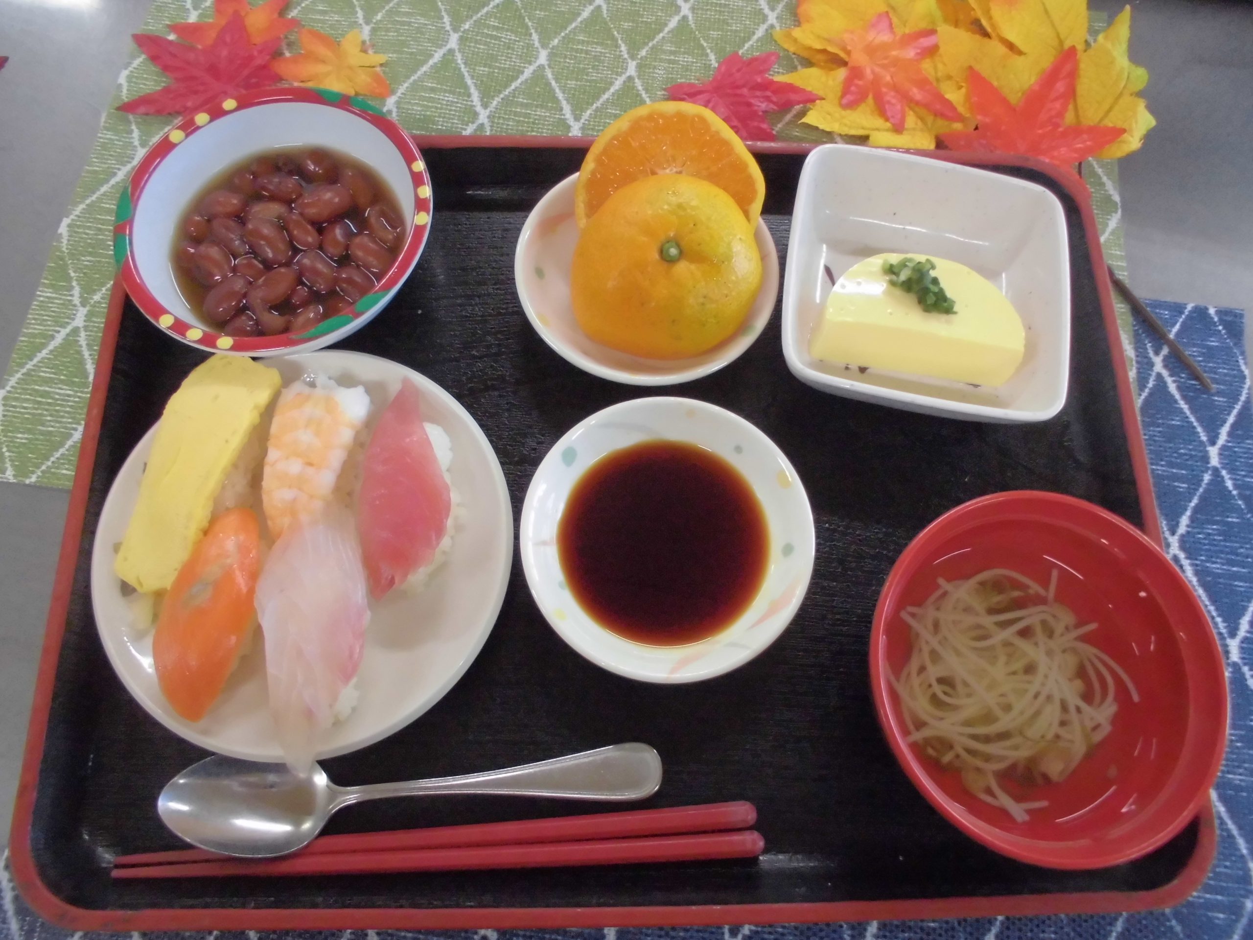 利用者様、久しぶりの握り寿司提供で喜ばれていました。
