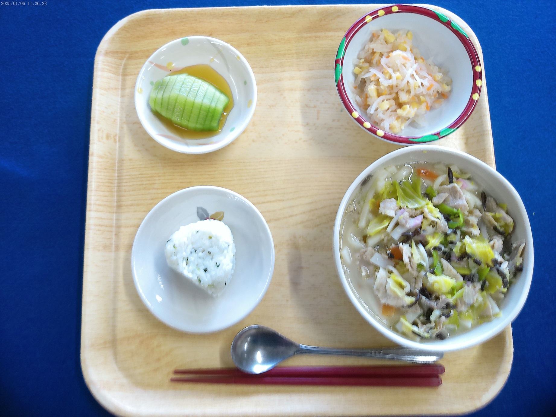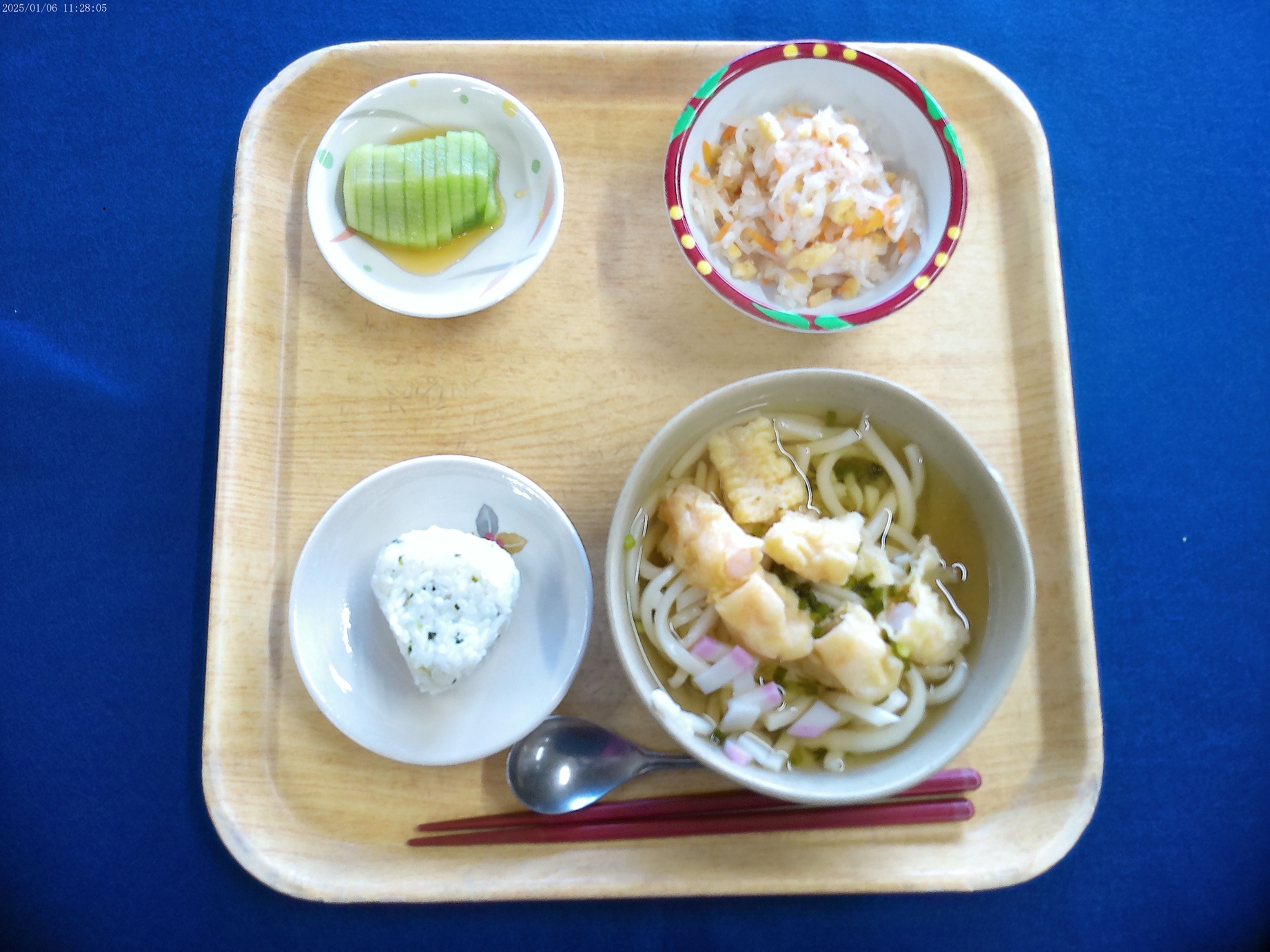 1月 選択メニュー 2025.1.15 トピック・写真 1月6日昼食時に、選択メニューを提供しました。1月の選択メニューは、ちゃんぽんうどんとえび天うどんの選択でした。ちゃんぽんうどんは具だくさんでおいしい、えび天うどんは上品な味がしておいしいと利用者様から好評でした。多くの方が汁まで完食されていました。 前へ 一覧へ戻る 次へ