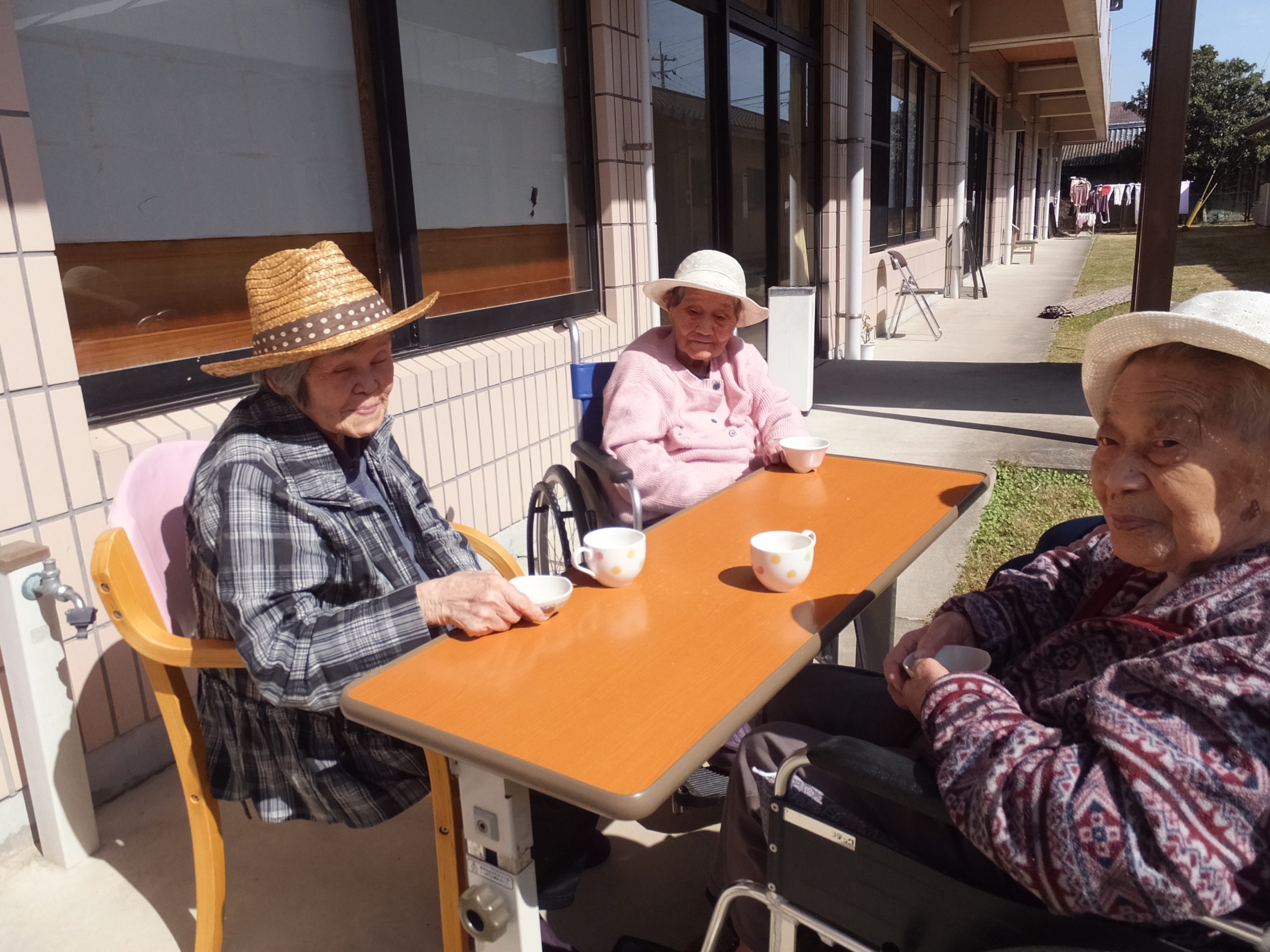 3月の活動 2025.3.13 グループホーム便り 屋外活動にて、お天気がいい時に中庭で、茶会のご様子です(*^-^*)ゆったりした時間が流れポカポカと良いお天気。美味しいお茶を飲み、そして、会話も弾みました!(^^)! 前へ 一覧へ戻る 次へ