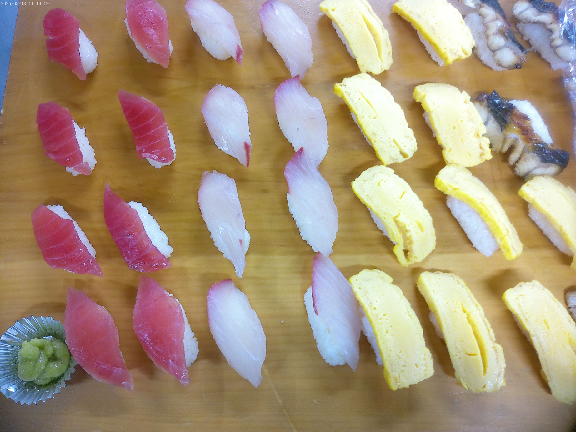 3月 誕生日会メニュー 2025.3.25 トピック・写真 3月18日、昼食時に誕生日会メニューを提供しました。★握り寿司★ミニ筑前煮★煮豆★茶そば汁★日向夏利用者の皆様、握り寿司を好まれる方が多く今月の握り寿司も好評でした。おやつには、苺のモンブランを提供しました。 前へ 一覧へ戻る 次へ