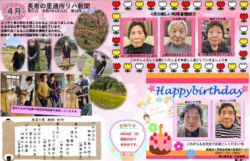 通所リハ新聞4月号 | 医療法人秀英会 | 保健・医療・福祉・介護のサービスを地域の方々に貢献