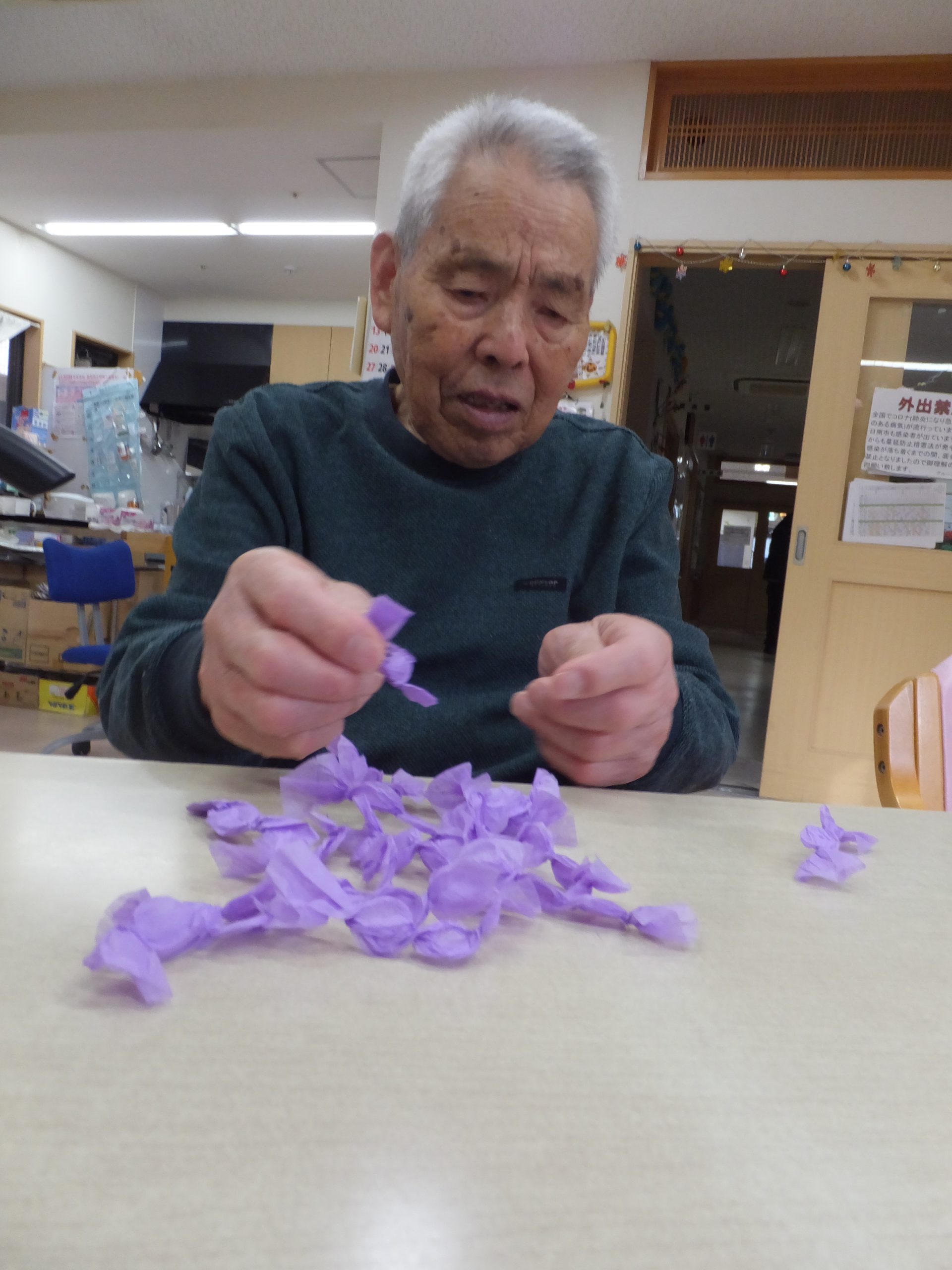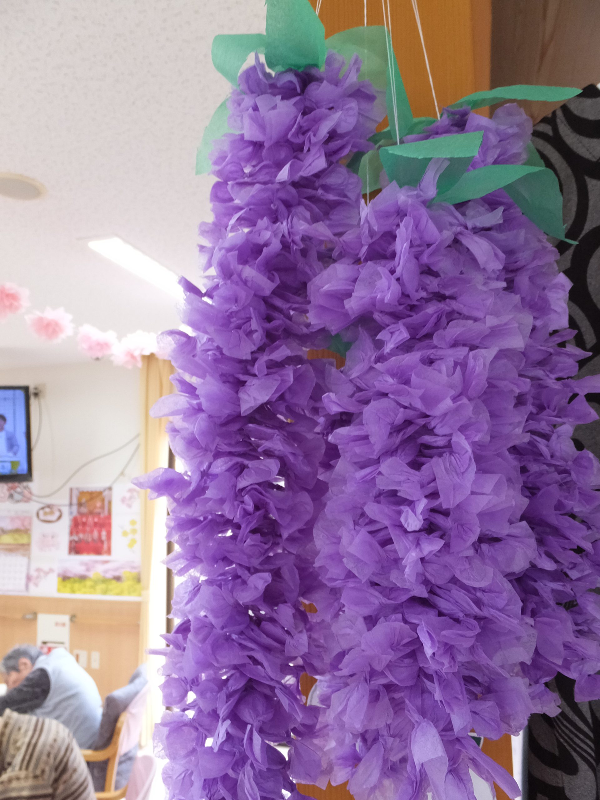 皆さん、一生懸命に作りました。綺麗な藤の花の完成です(*^-^*)