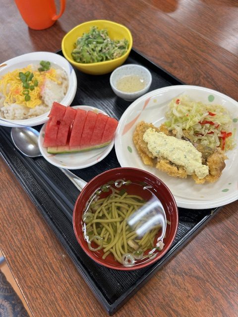 誕生会メニュー🎊 2025.6.12 通所リハビリテーション便り 6月11日誕生日会メニューが提供されました(*^▽^*) スイカは今年今年初めて召し上がる方が多く喜ばれました!(*^_^*) 前へ 一覧へ戻る 次へ
