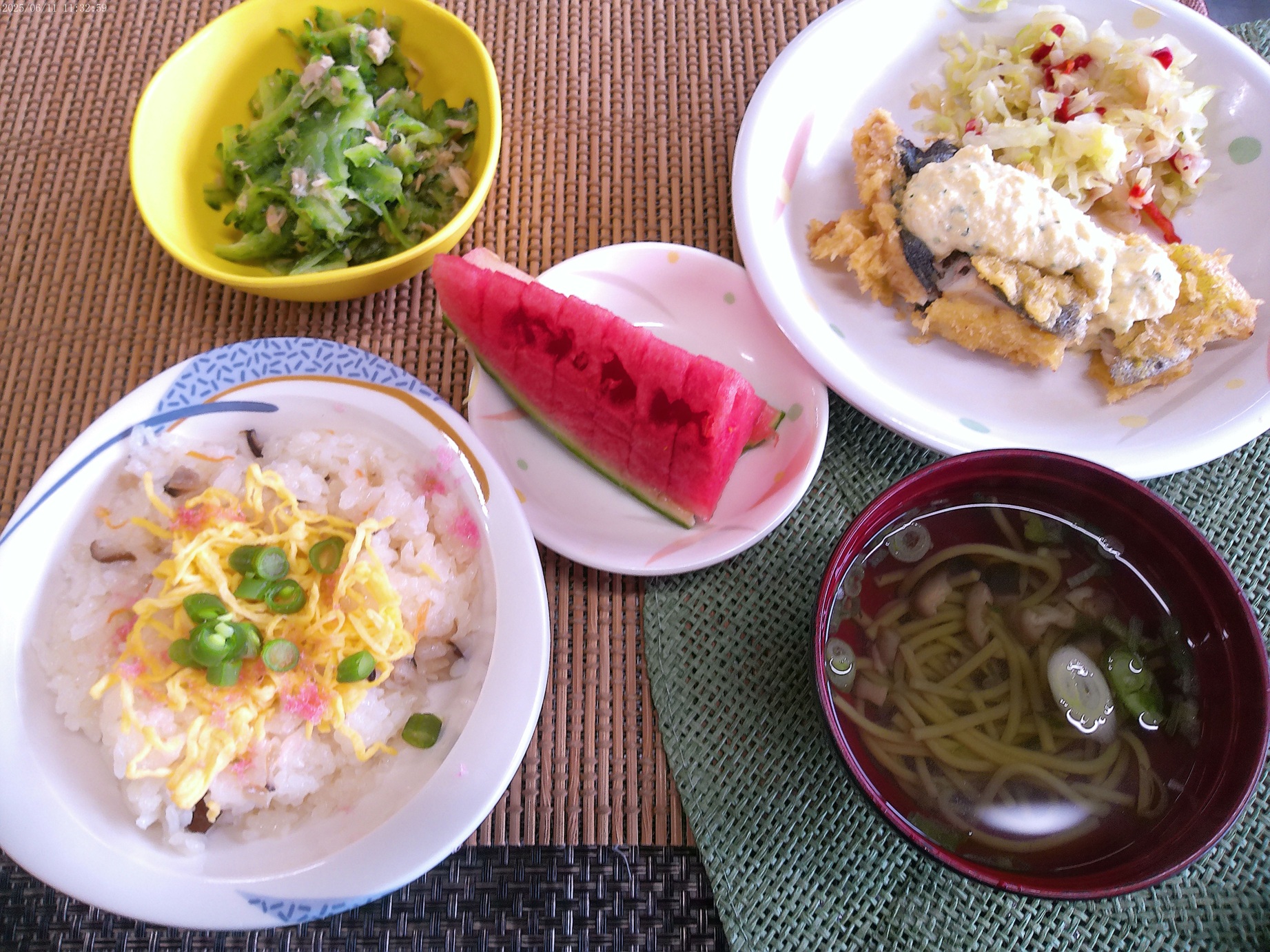 6月 誕生日会メニュー 2025.6.13 トピック・写真 6月11日昼食時に誕生日会メニューを提供しました。 ★散らし寿司 ★魚のフライ ★ゴーヤの酢の物 ★茶そば汁 ★すいか多くの利用者様より、散らし寿司が好評でした。スイカは今年初めての提供となりました。甘さもありみずみずしくておいしいといった声が聞かれました。 前へ 一覧へ戻る 次へ
