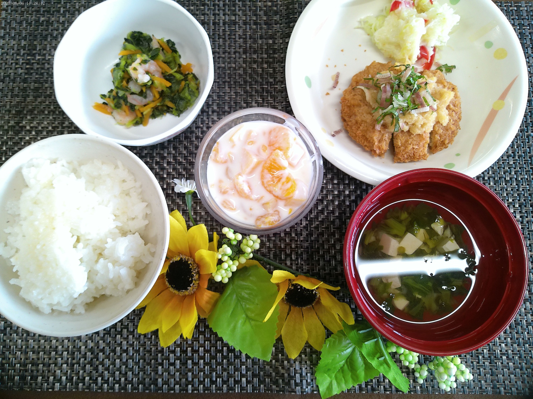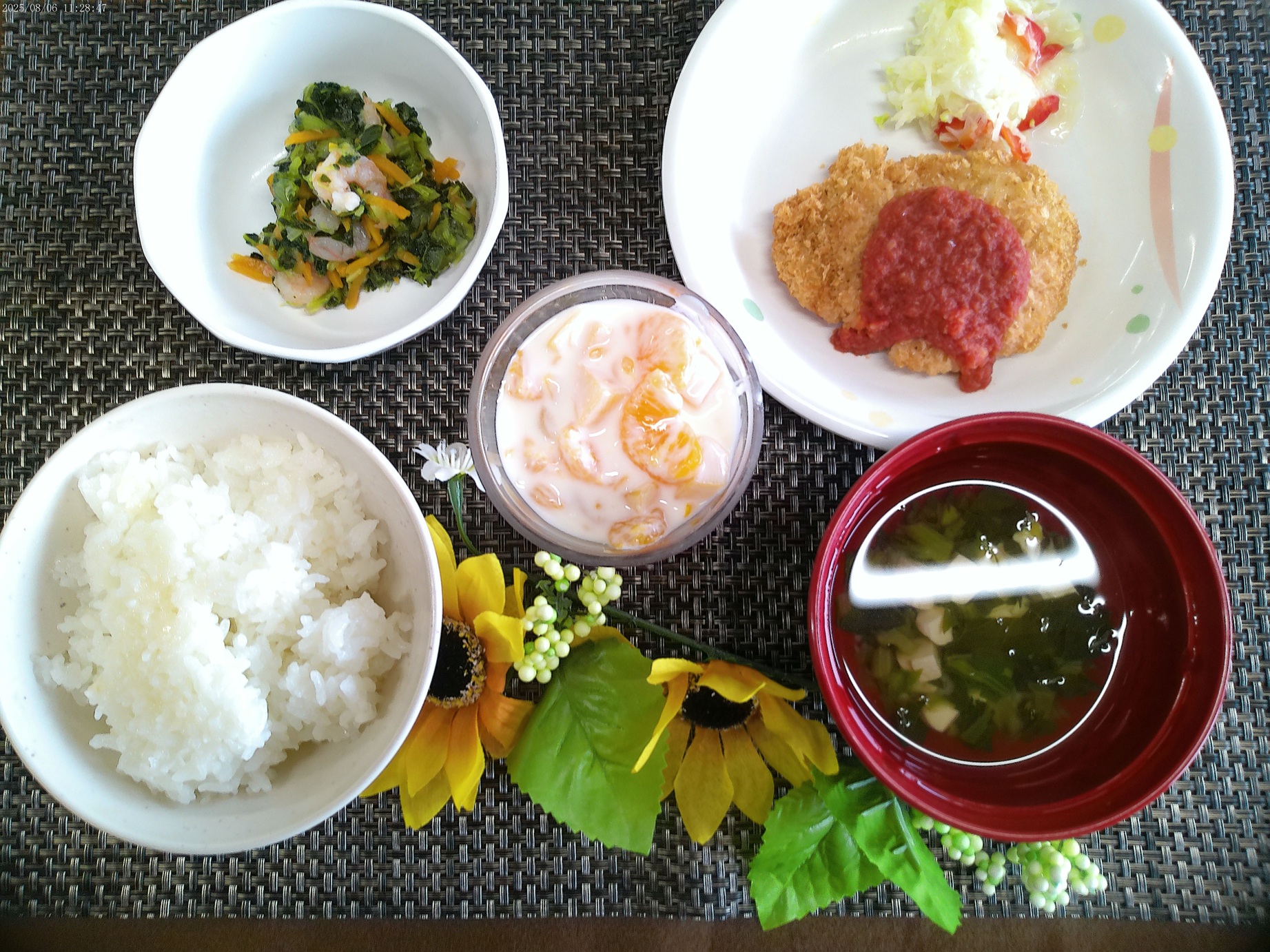 8月 選択メニュー 2025.8.8 トピック・写真 8月6日、昼食時に月1回の選択メニューを提供しました。今月は、おろしポン酢チキンカツとトンカツトマトソースがけの選択でした。おろしポン酢チキンカツを選択される方が多かったです。カツの衣が硬いといった意見もありましたが、多くの方が完食されていました。 前へ 一覧へ戻る 次へ