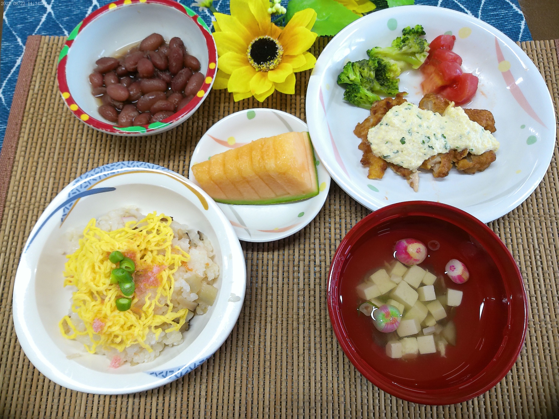 8月22日、昼食時に誕生日会メニューを提供しました。