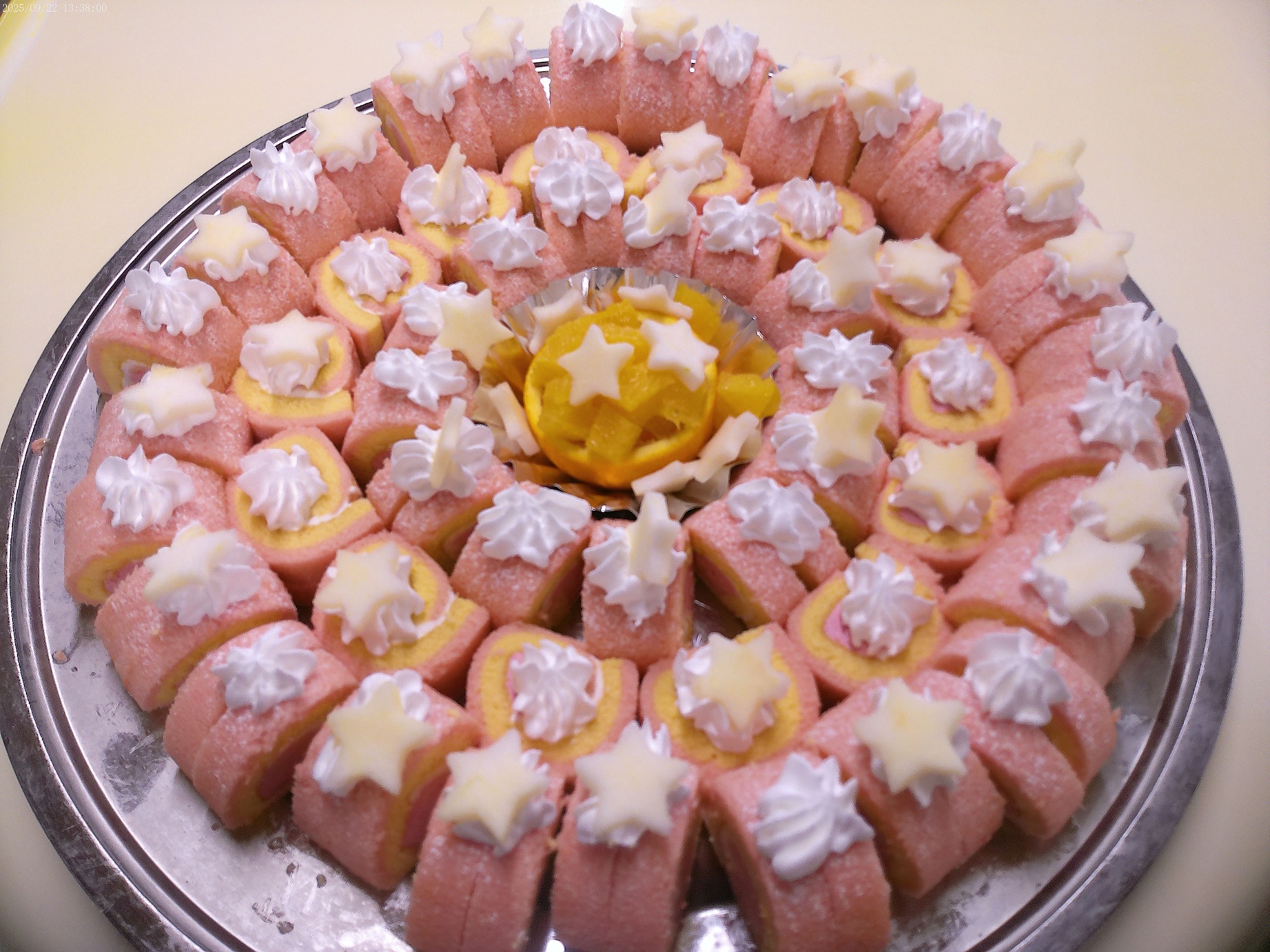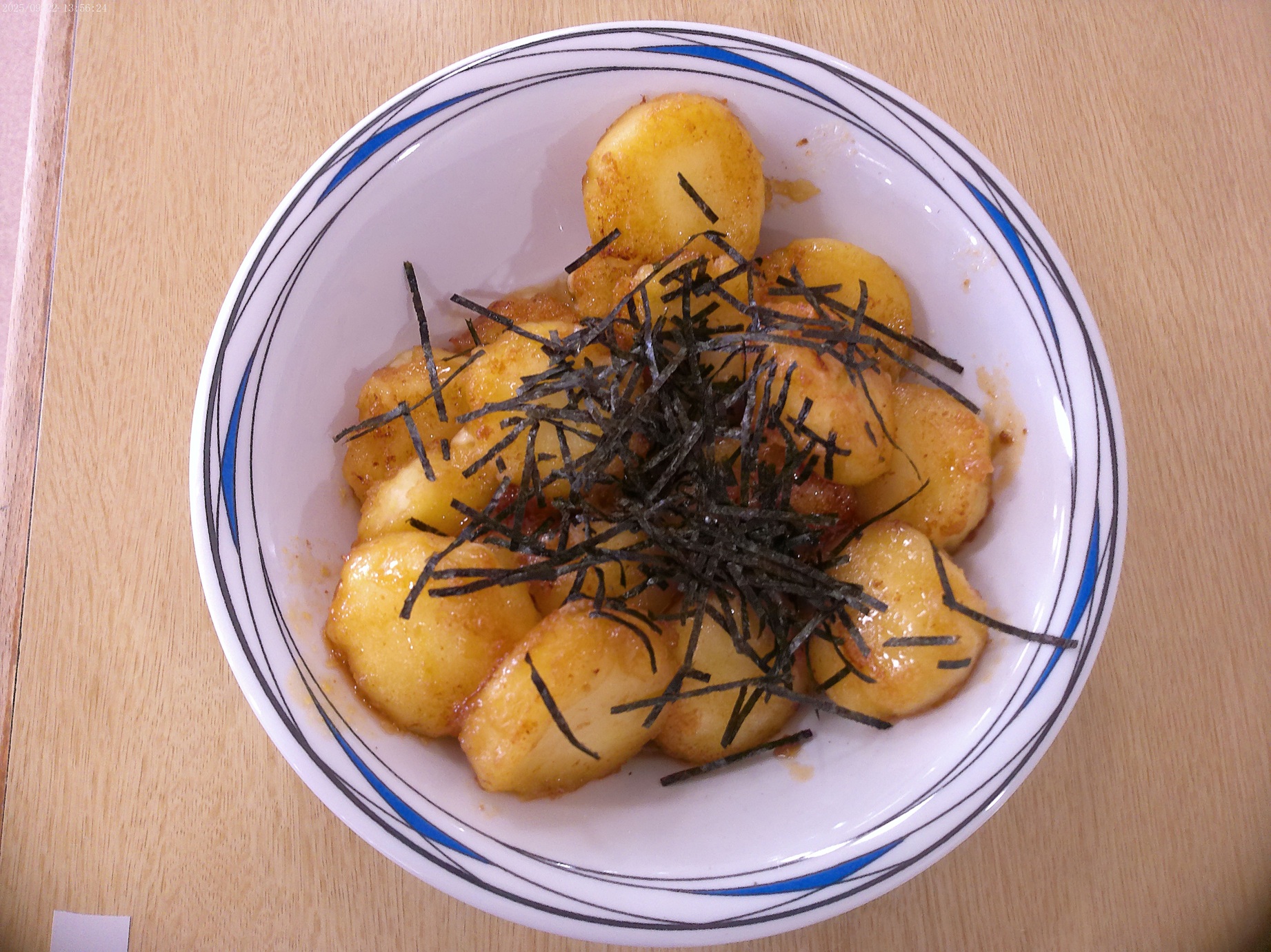 9月 入所喫茶 2025.9.24 トピック・写真 9月22日、入所喫茶を行いました。今月のメインは、「芋もち」でした。その他に、焼き鳥、ミニケーキ、ジュースを提供しました。芋もちは、多くの利用者様に好評で、おかわりを希望される方も多くいらっしゃいました。 前へ 一覧へ戻る 次へ